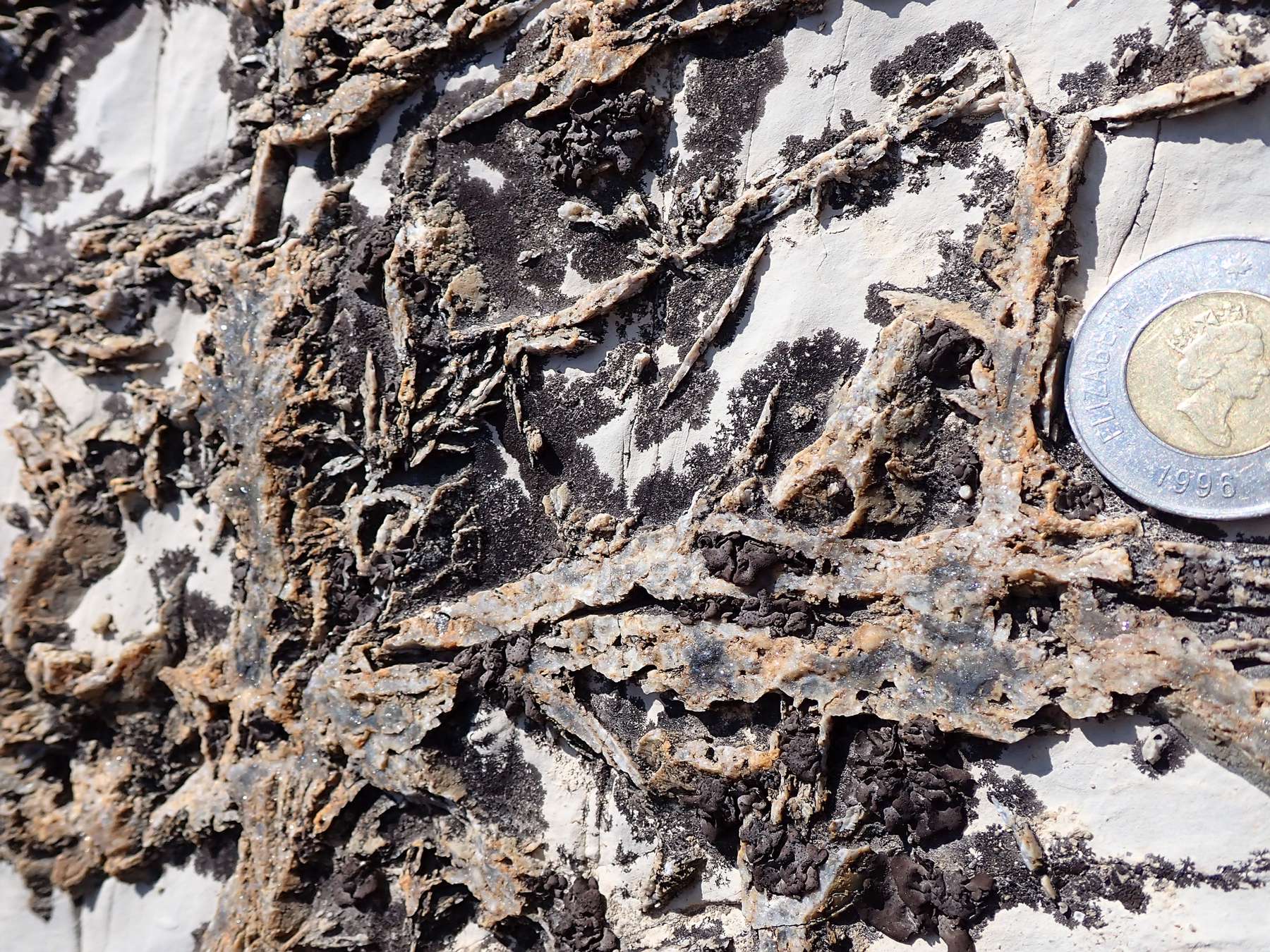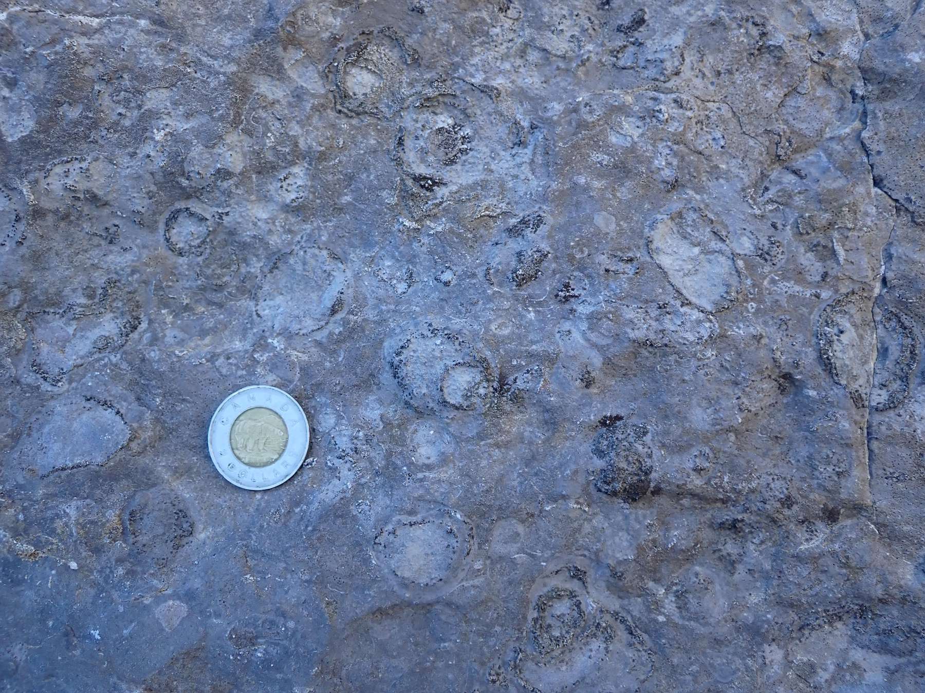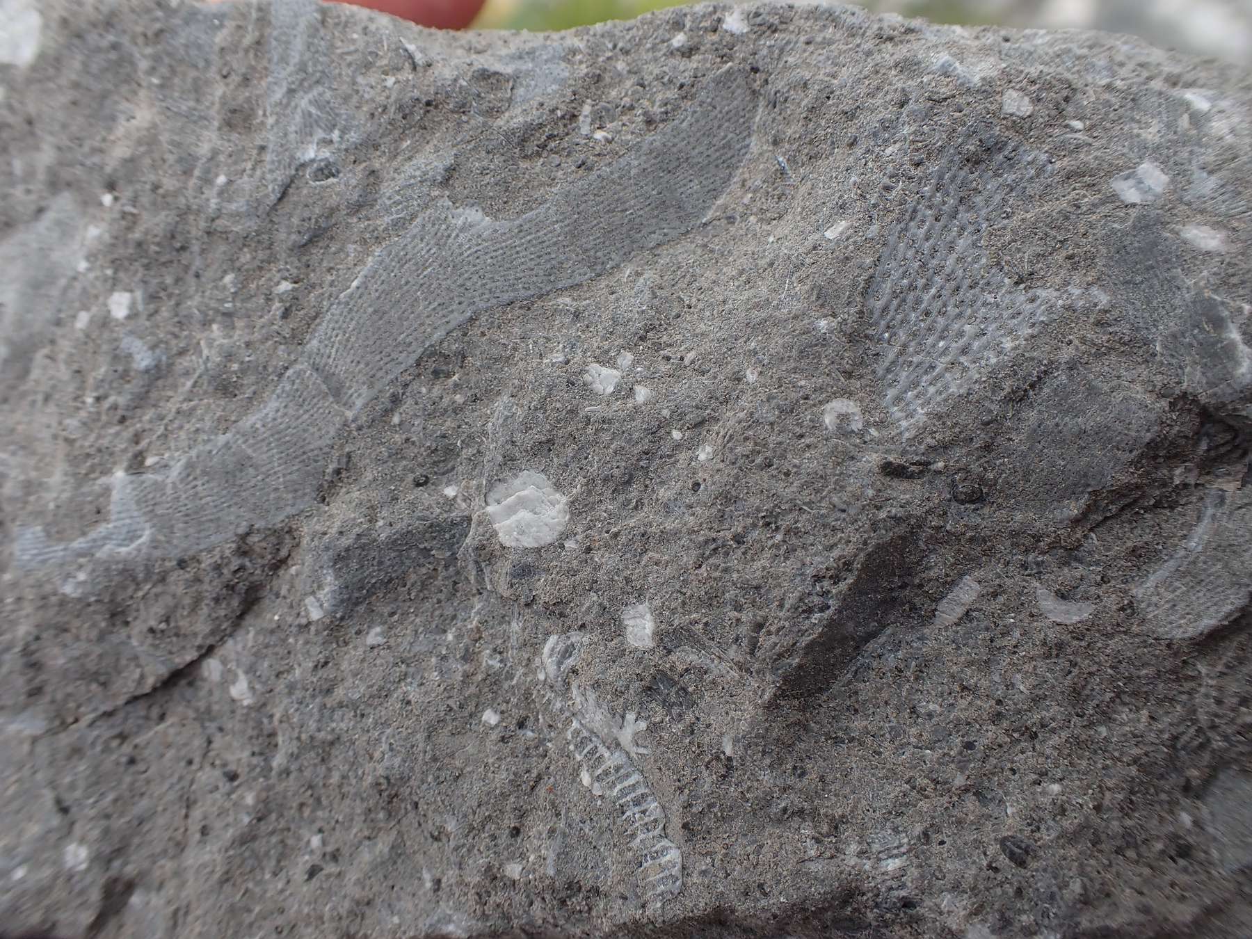 Colonial/branching (left) and solitary (right) bryozoa in the Mount Head Formation, Mount Gass
