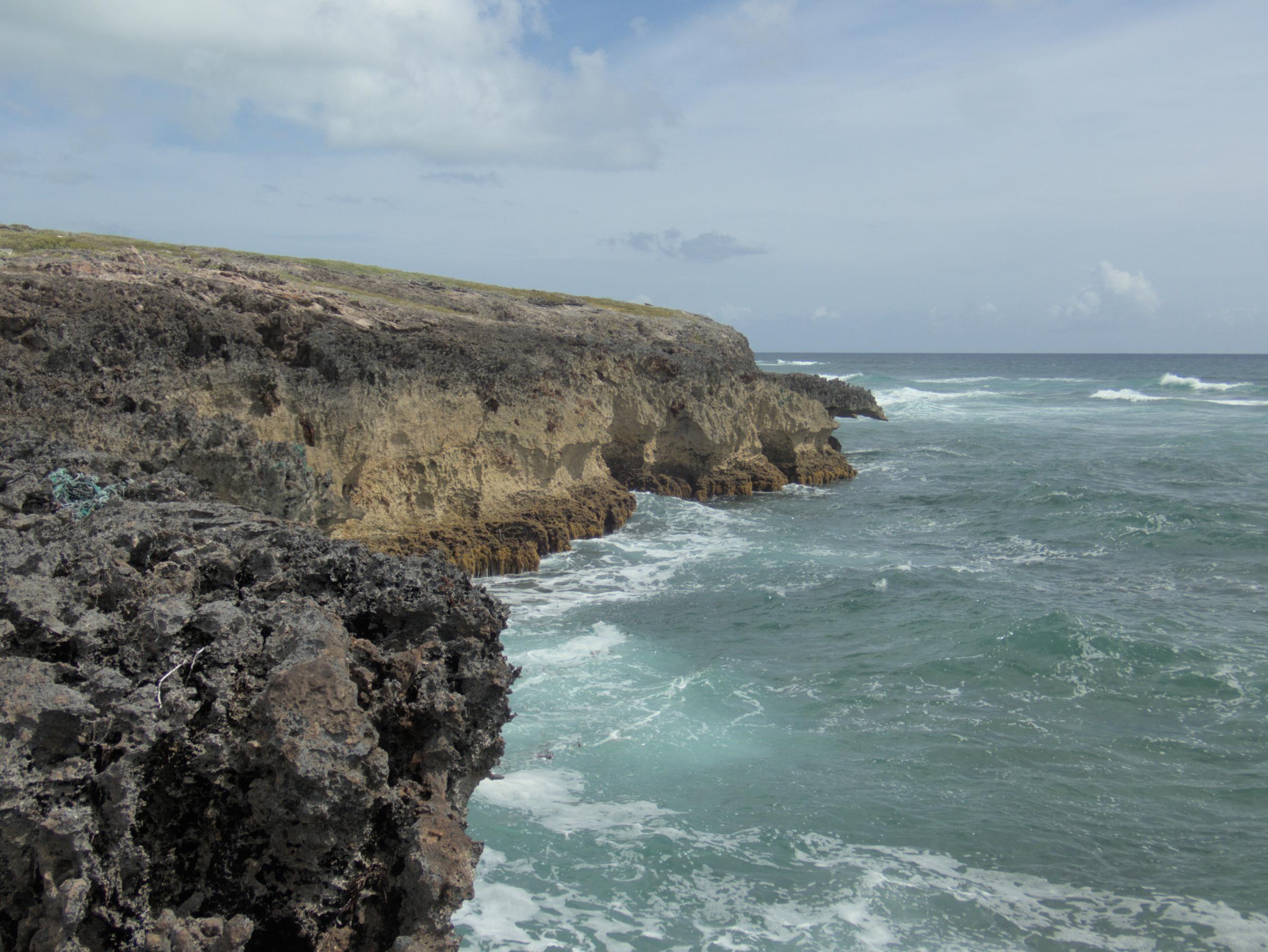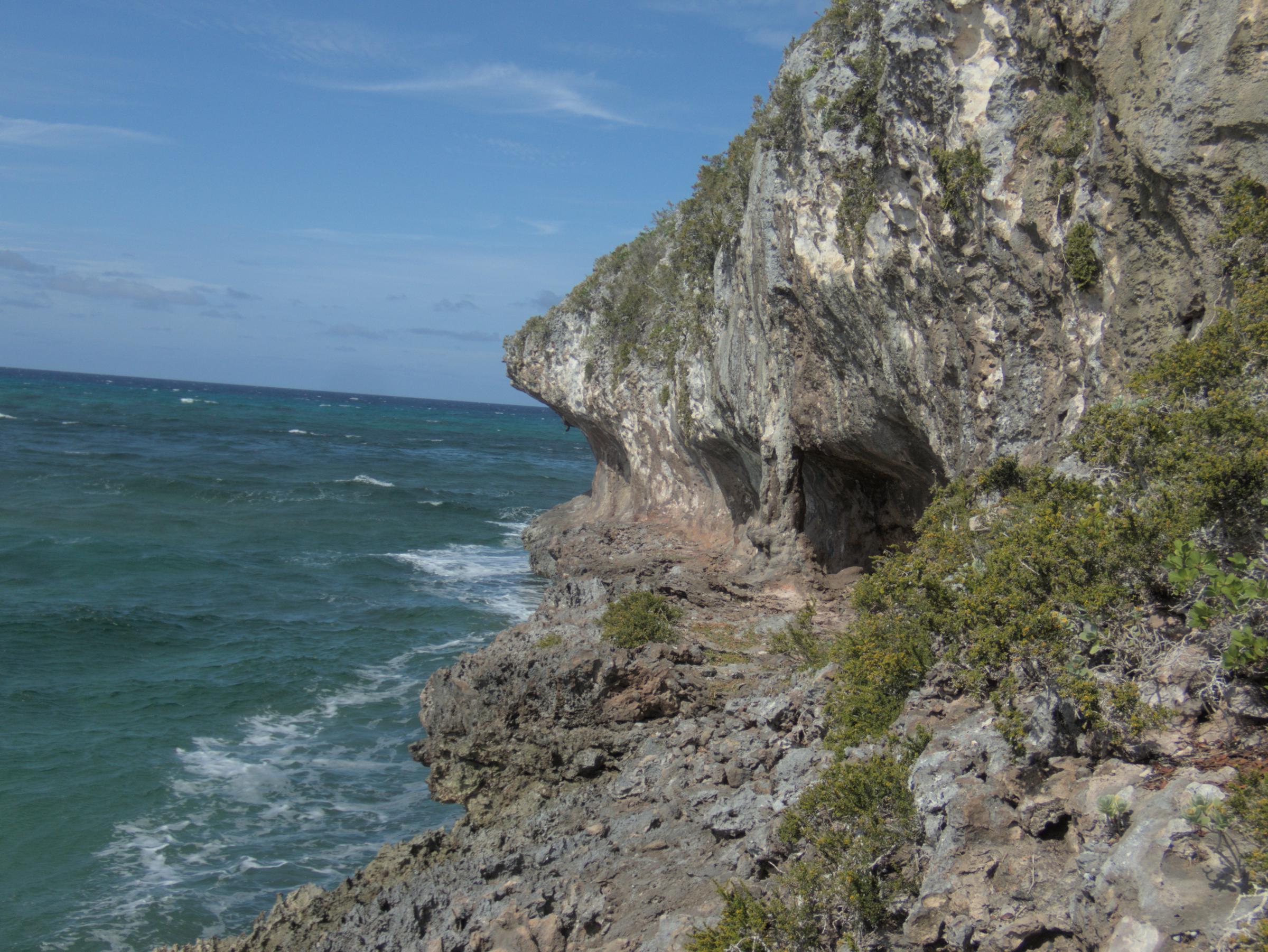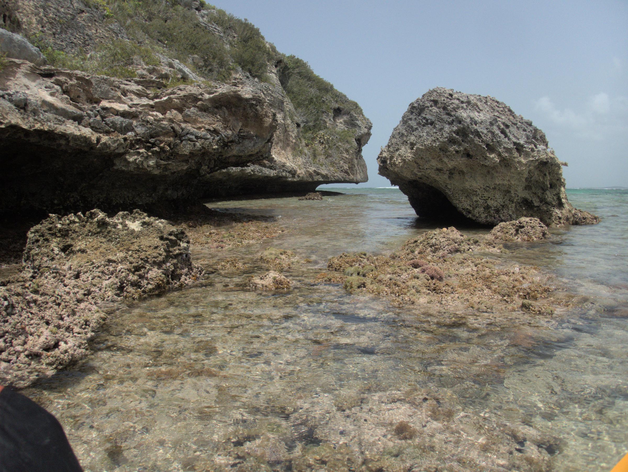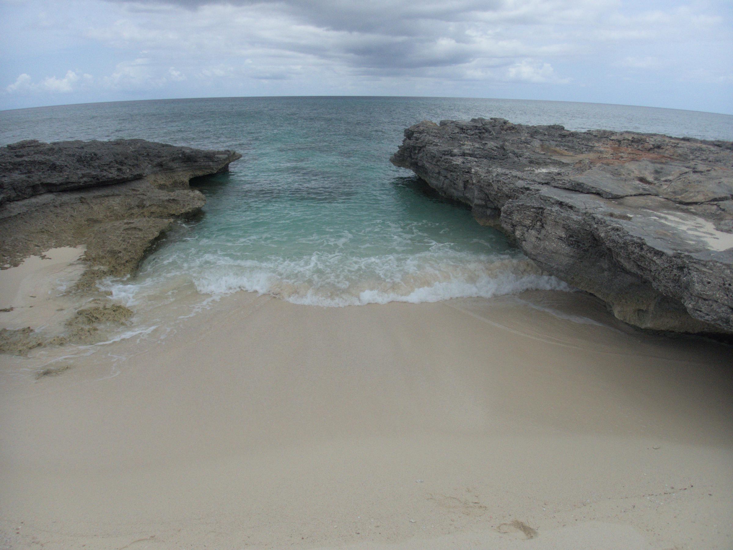 This gap in the fossil coral reef collects sand today, resulting in a nice pocket beach