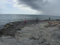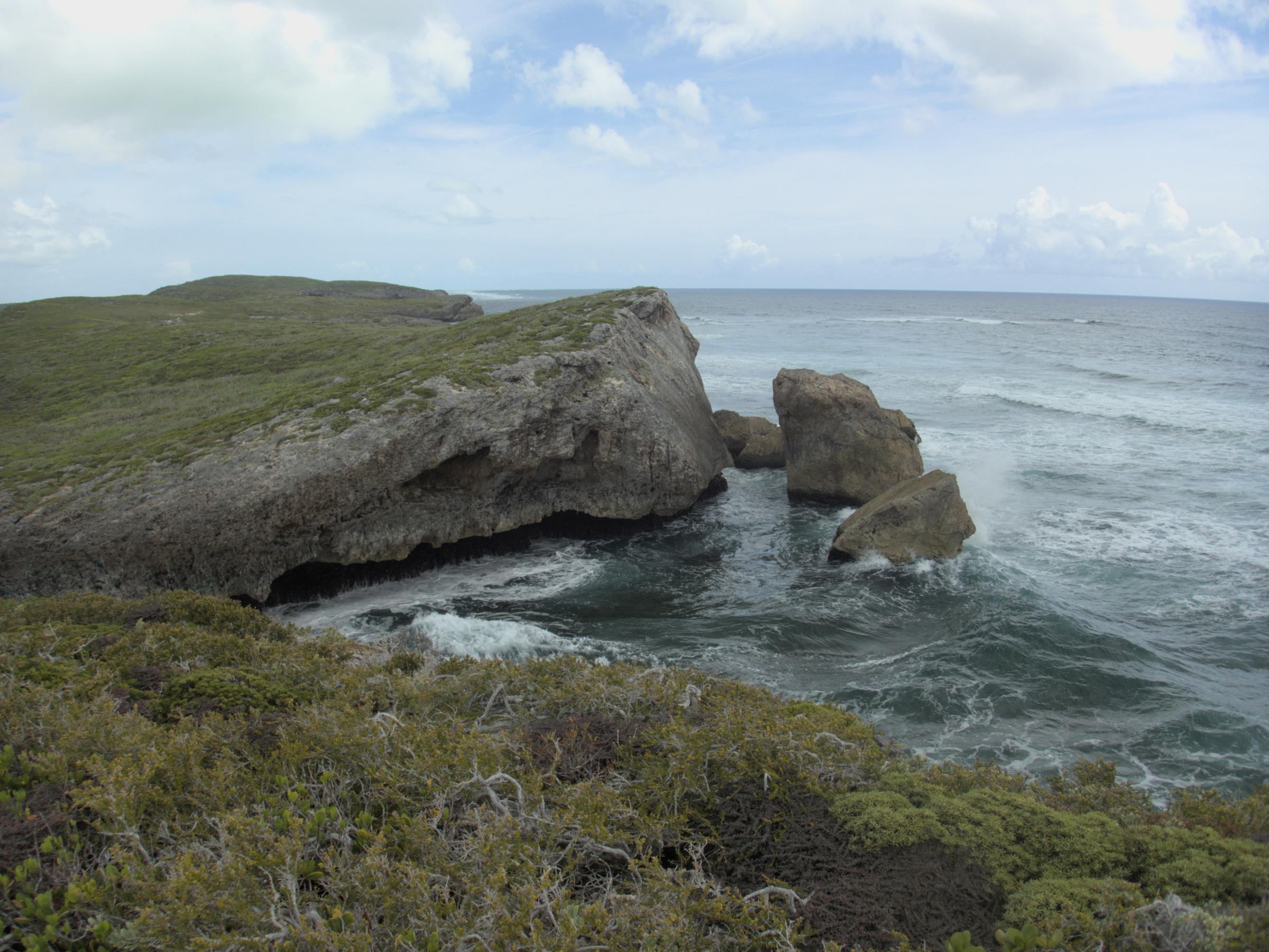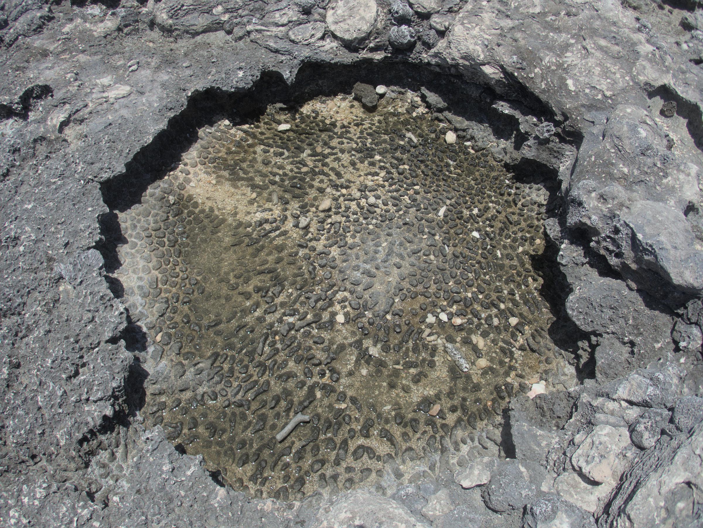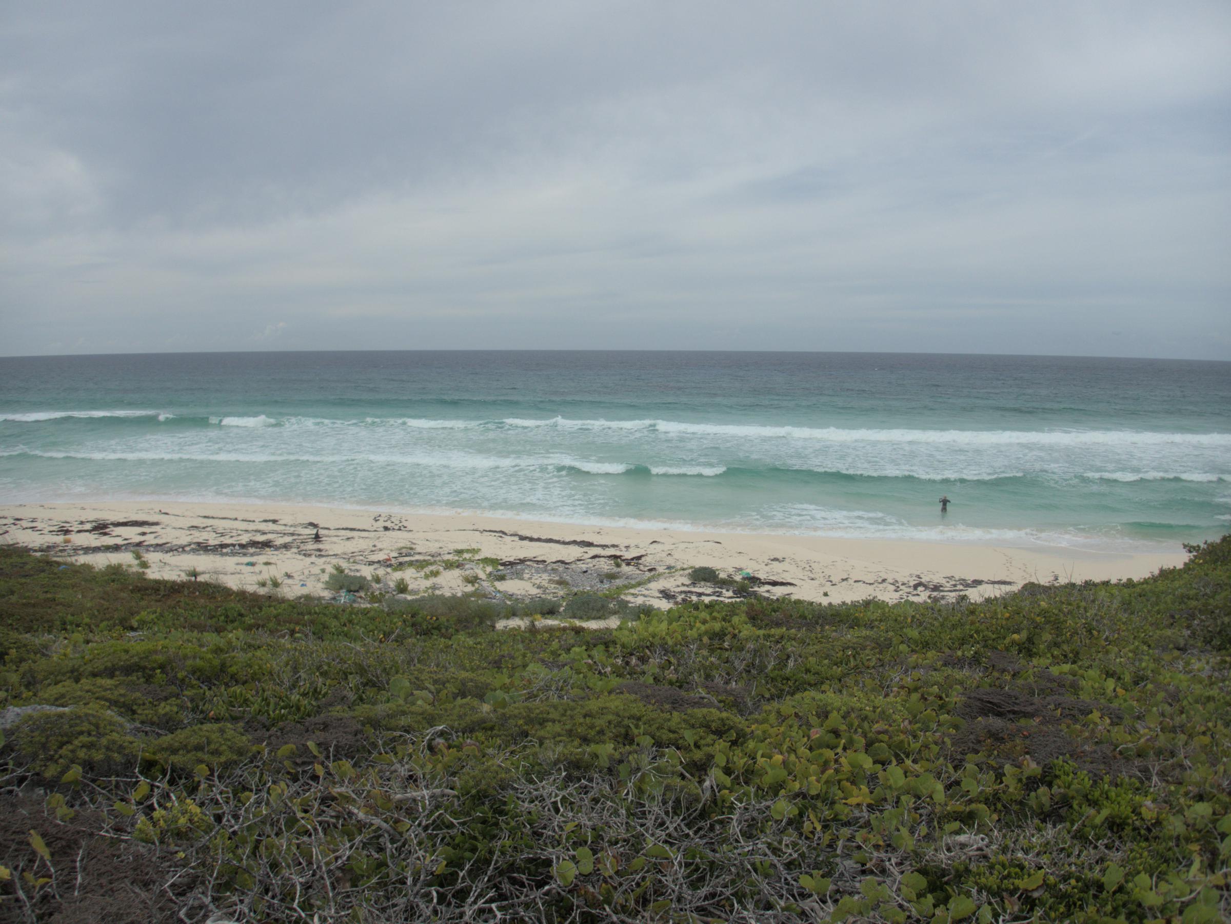This gap in the fossil coral reef collects sand today, resulting in a nice pocket beach
