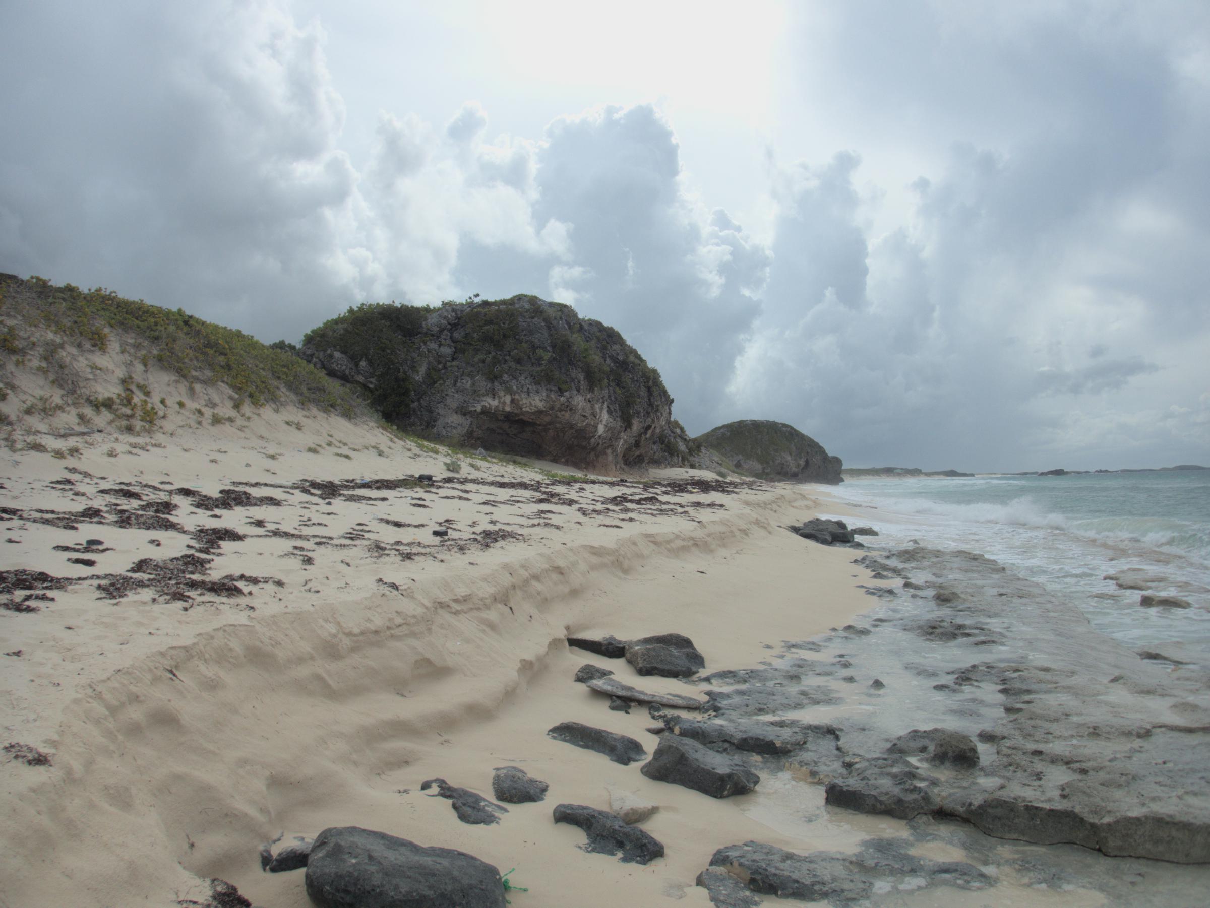 Fossilized dunes break up the modern beach on Middle Caicos