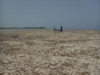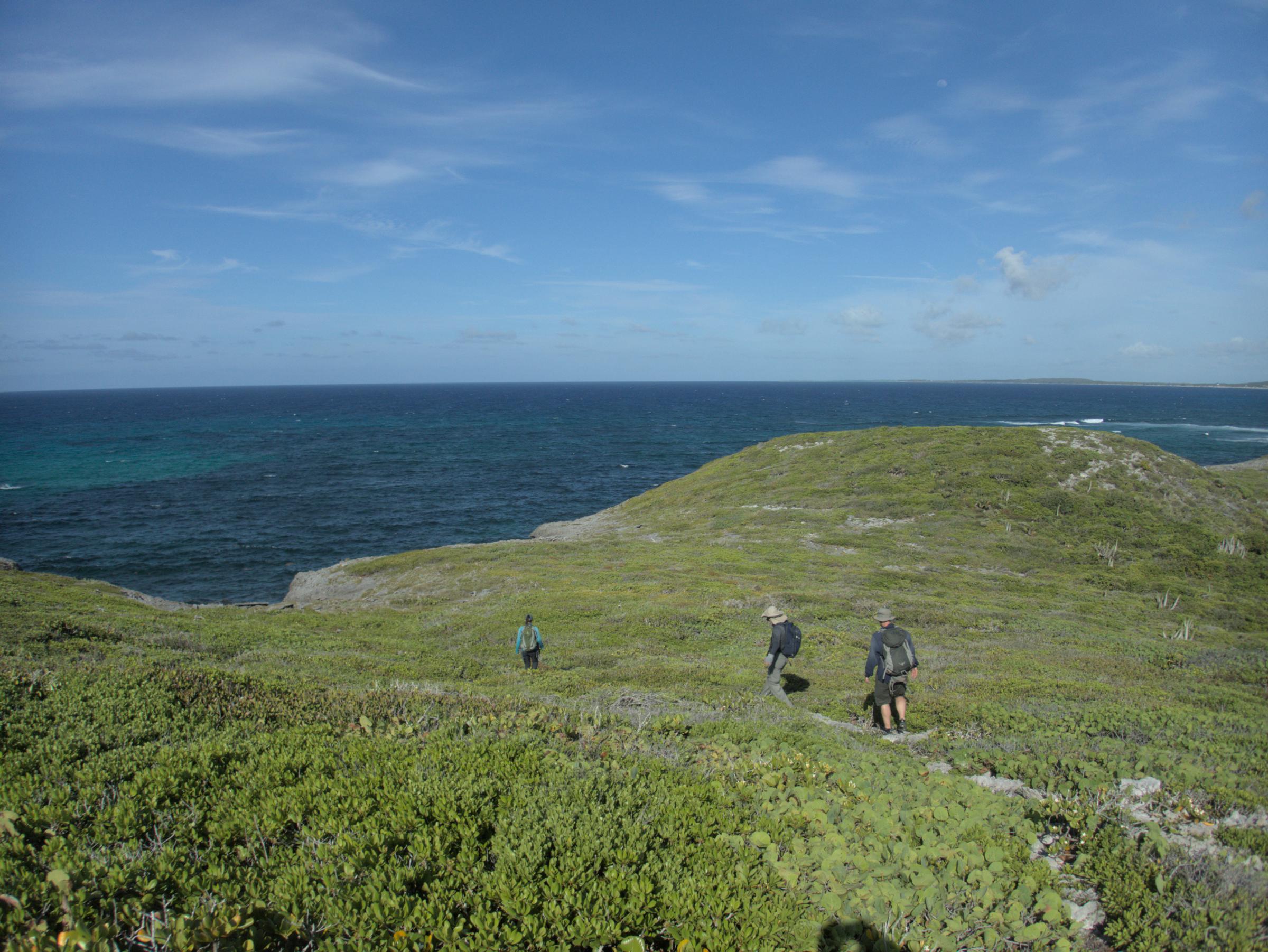 The team heads inland after a hot walk
