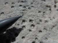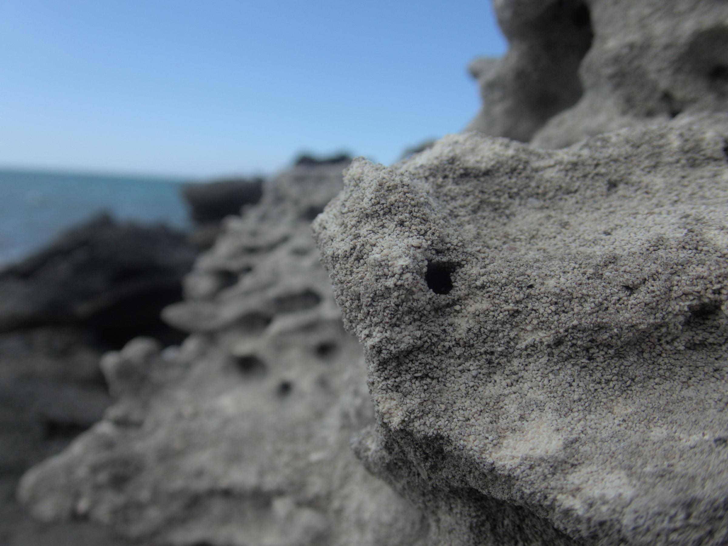 These fossilized air bubbles formed as waves pushed air into the sand of this ancient beach