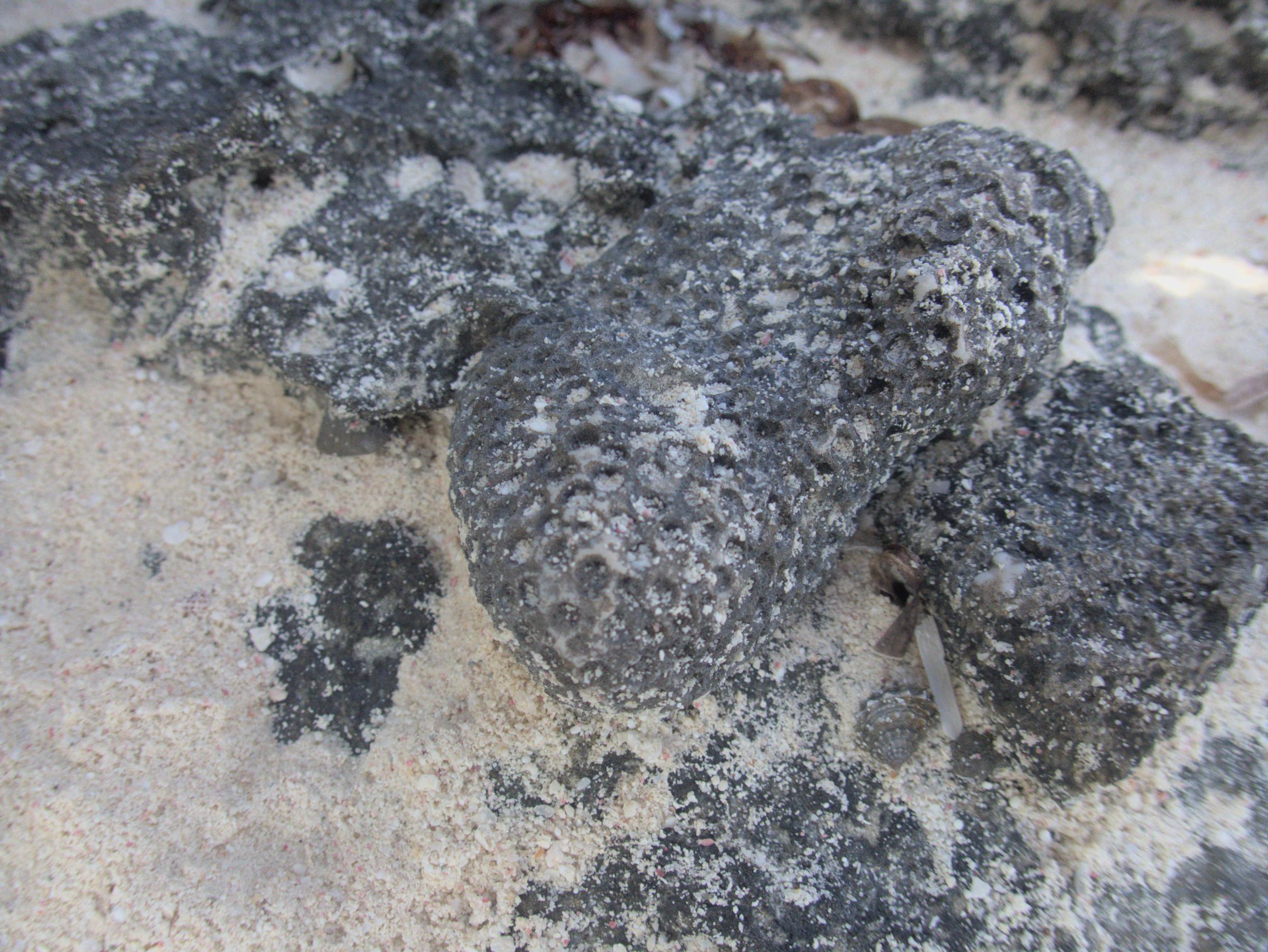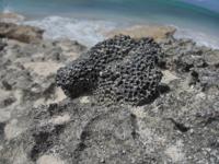 A holocene coral (orbicella anularis?) clast sitting in lithified holocene beach