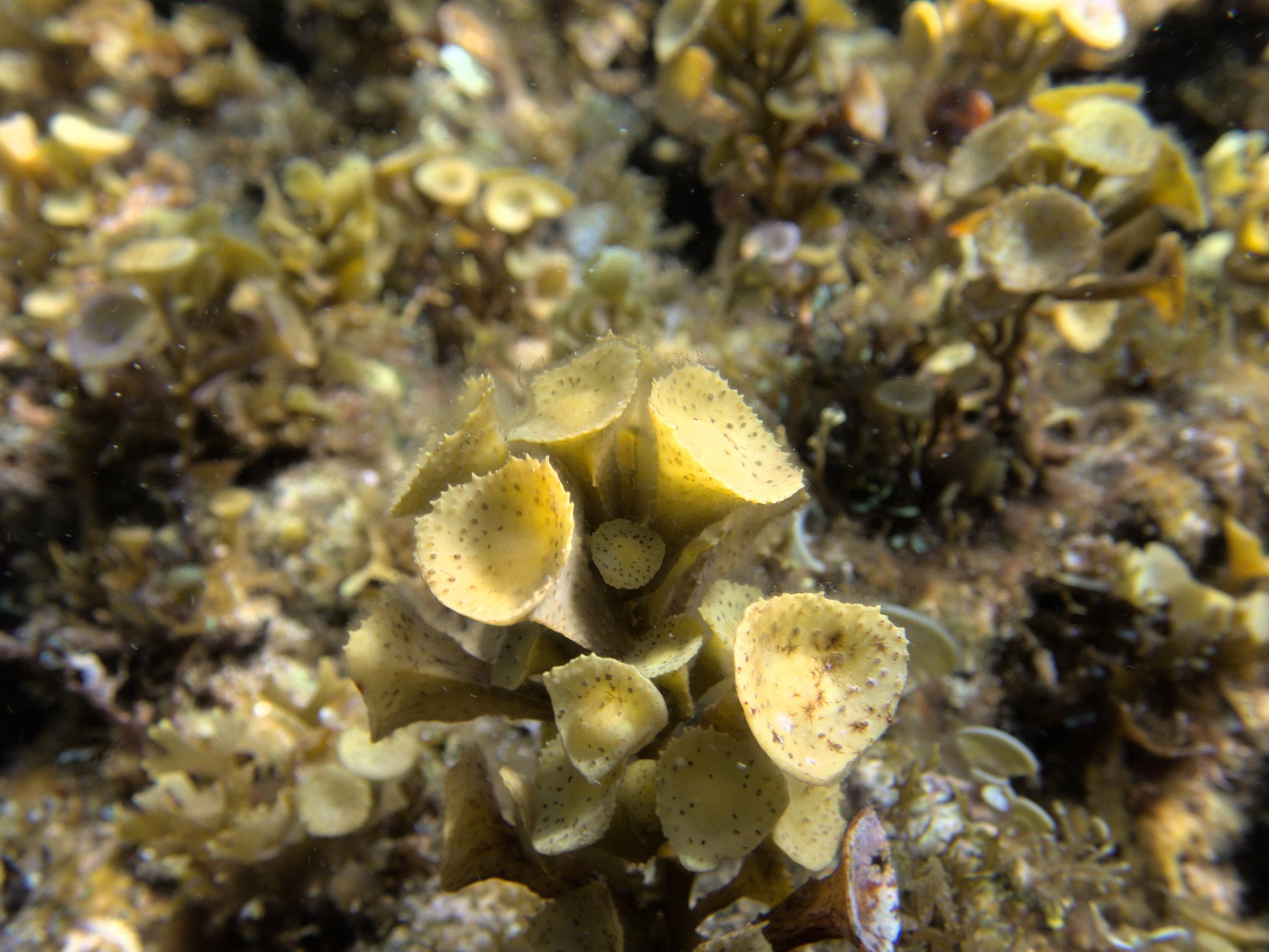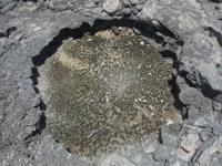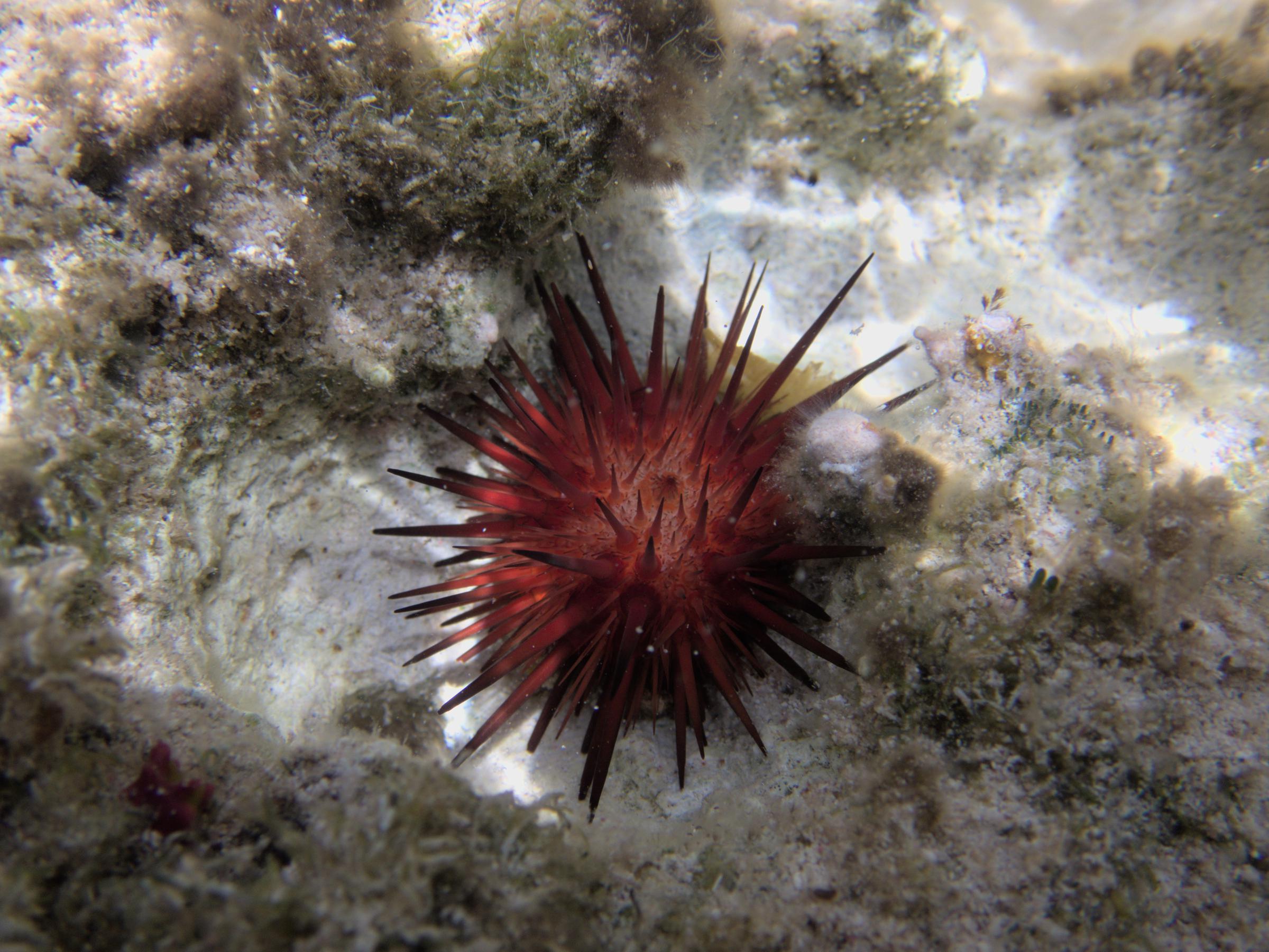 A rock boring urchin hanging out on a hardground just below low tide