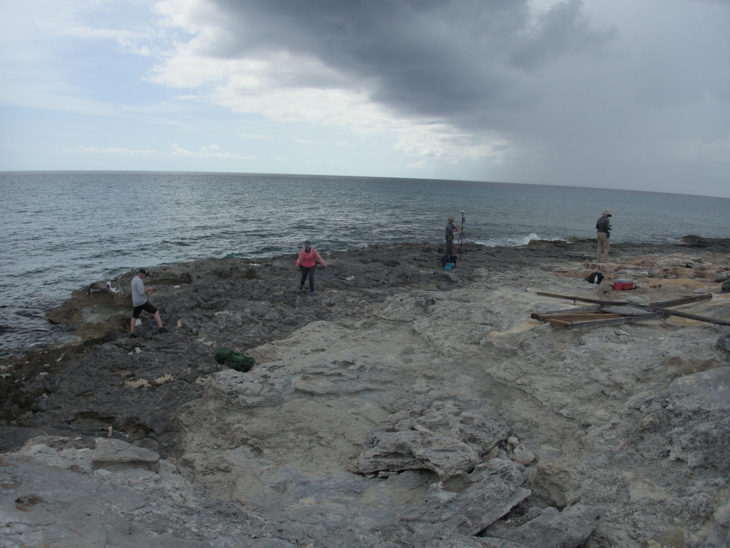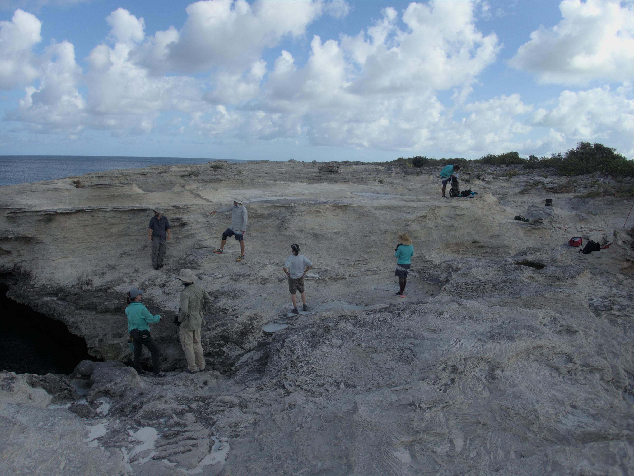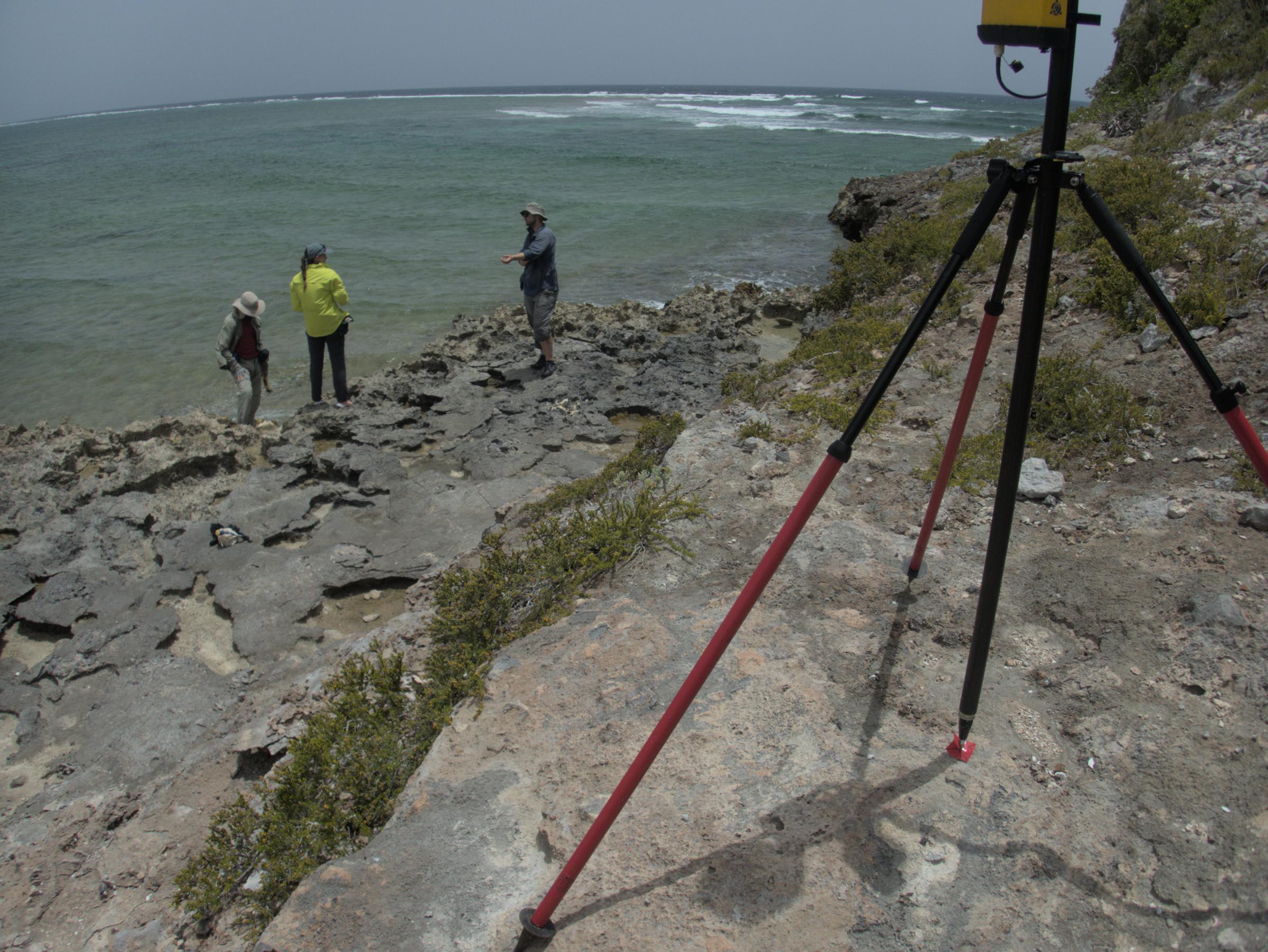 The team surveying a fossil coral reef from the last interglacial