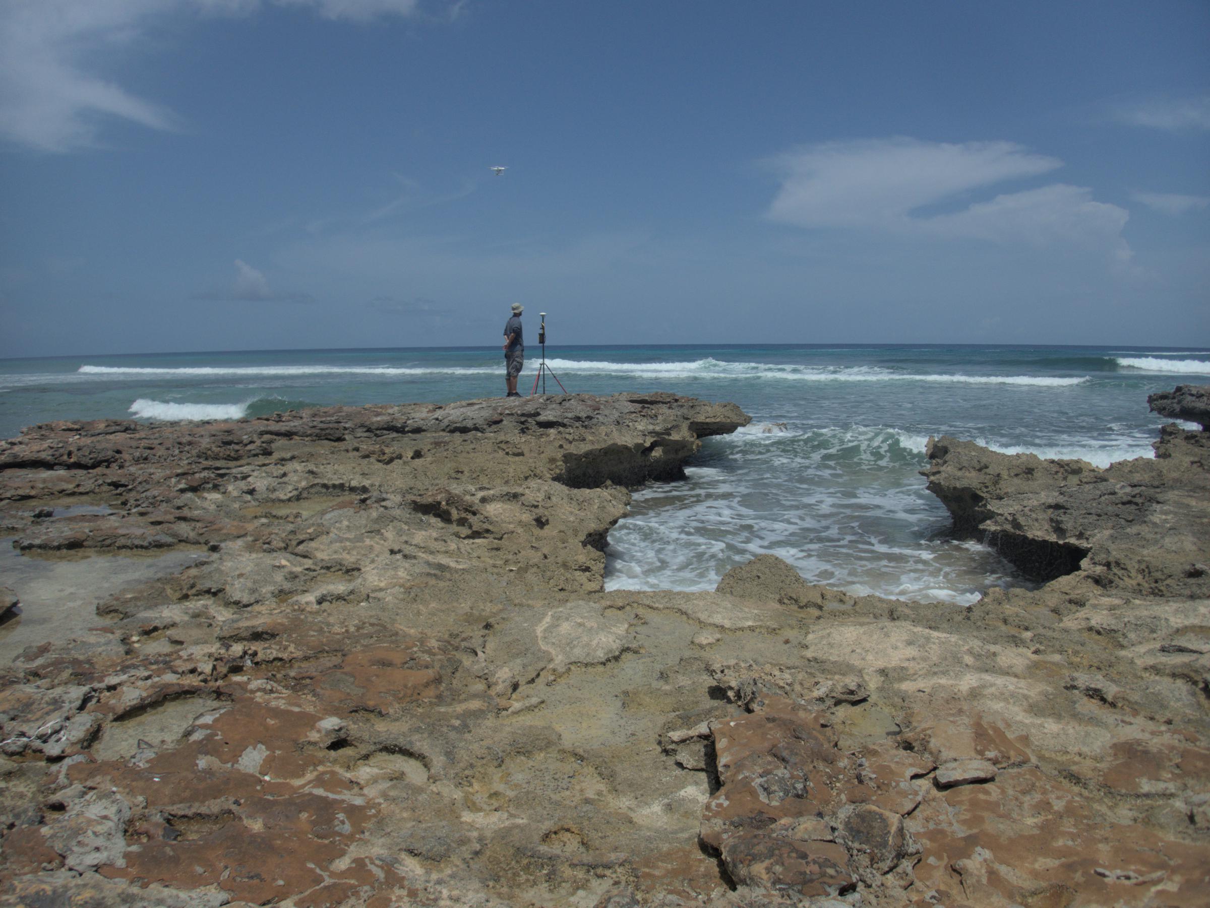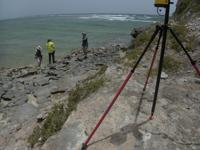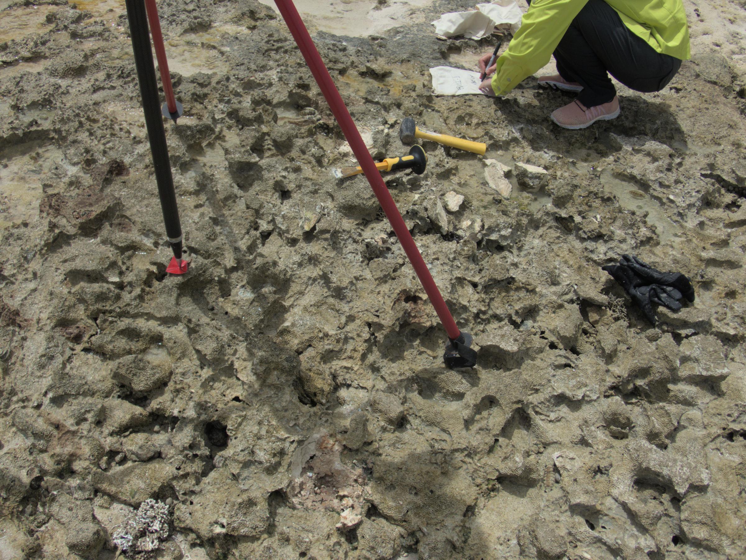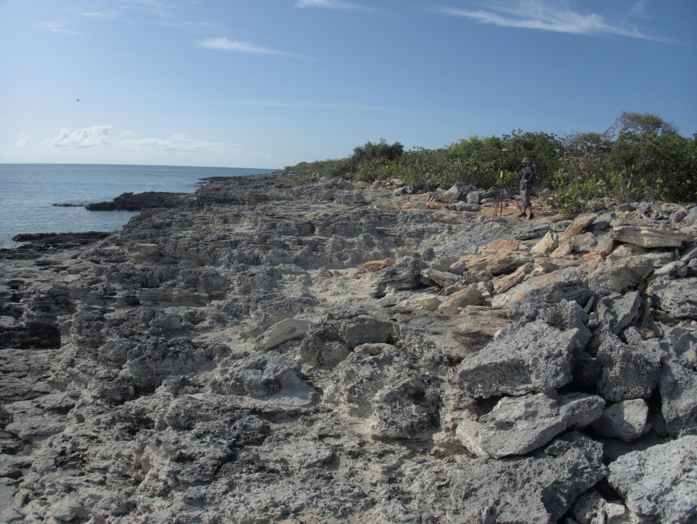 Roger finishing up a survey of a fossilized last interglacial reef