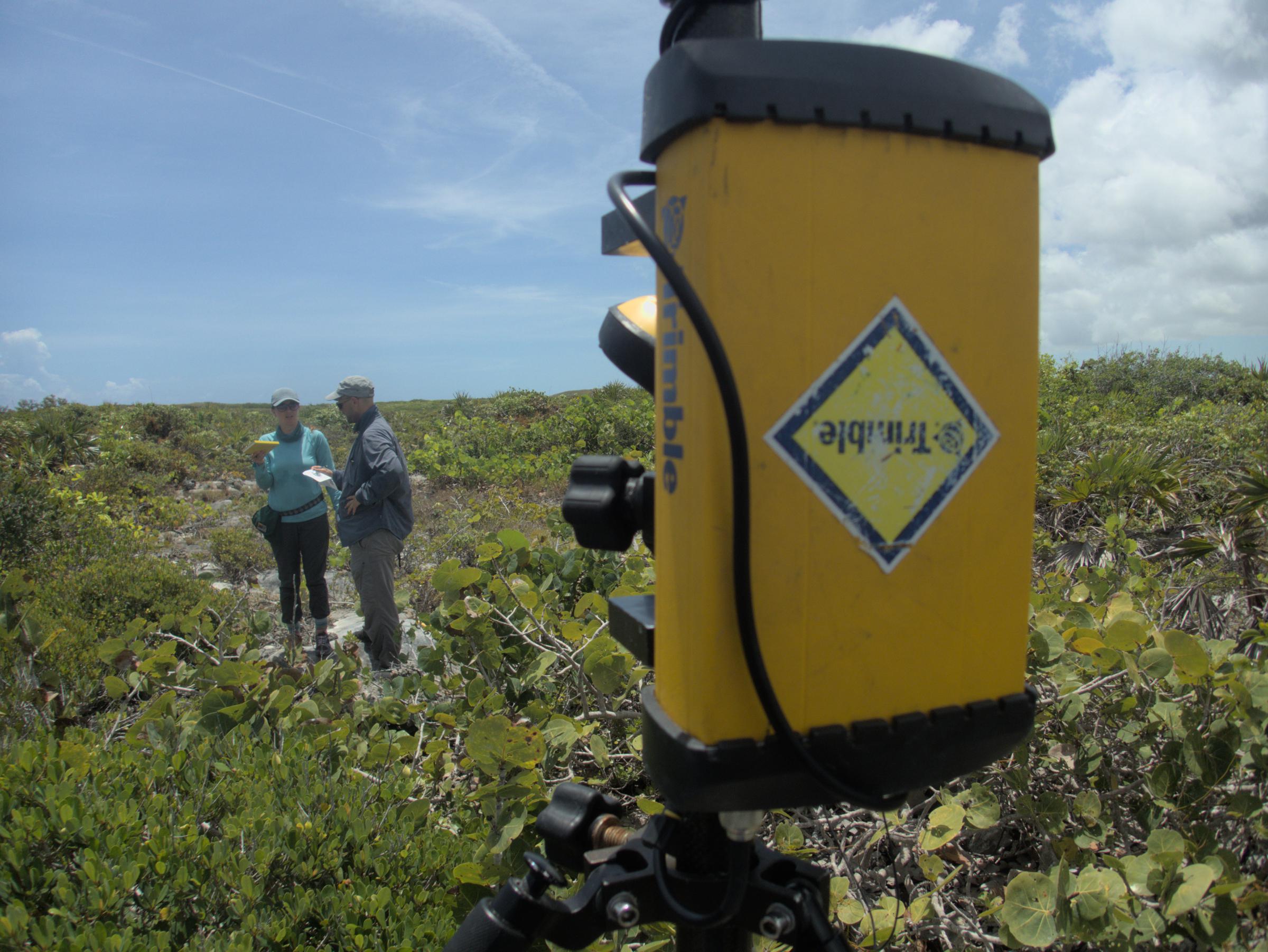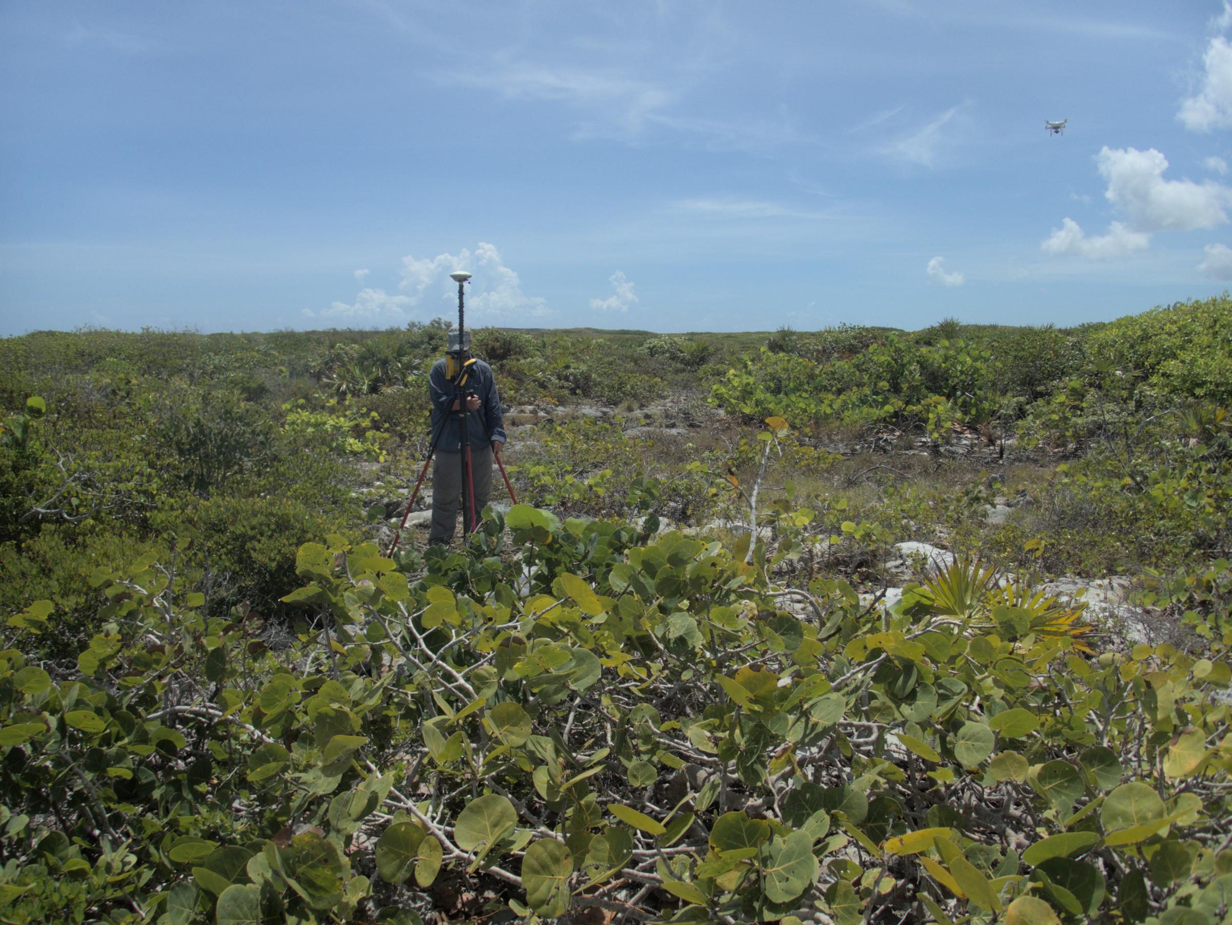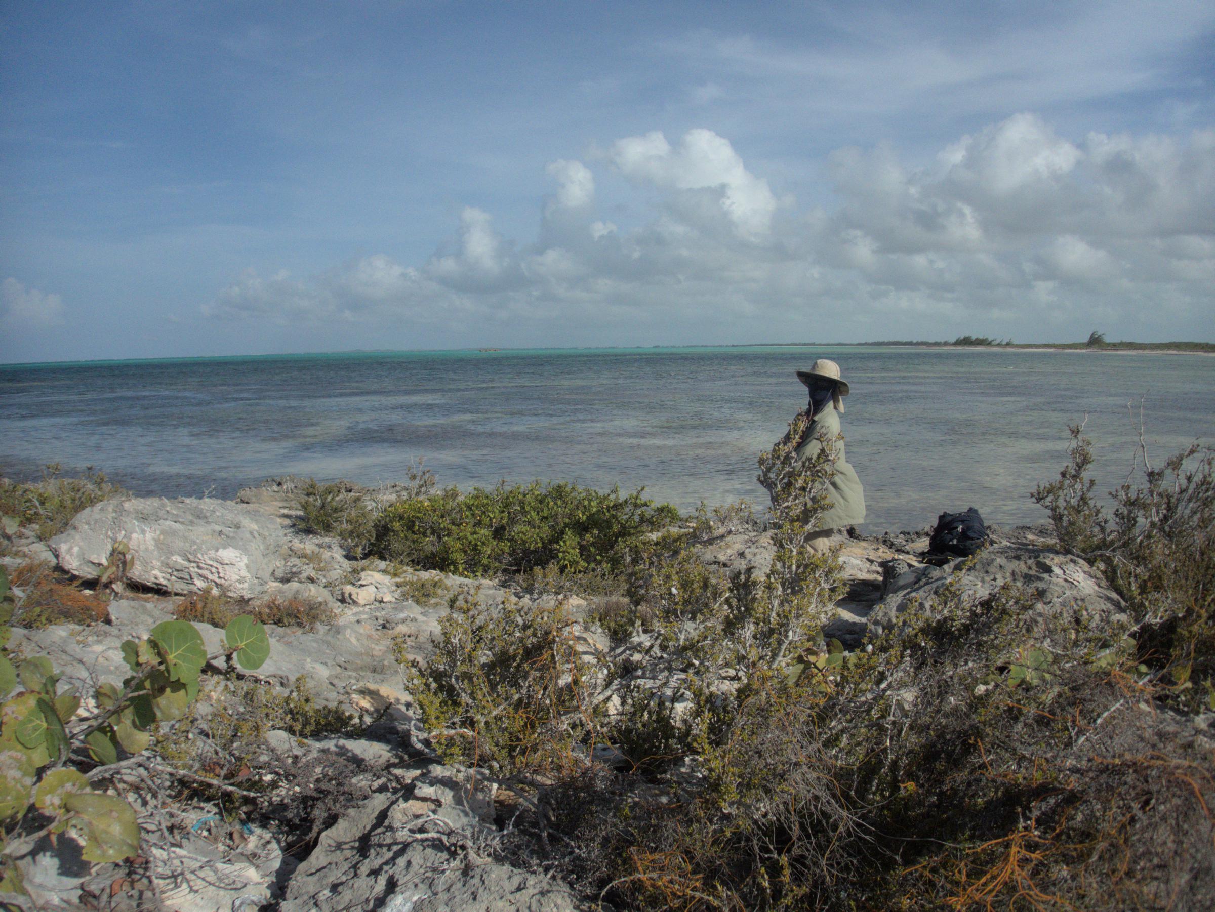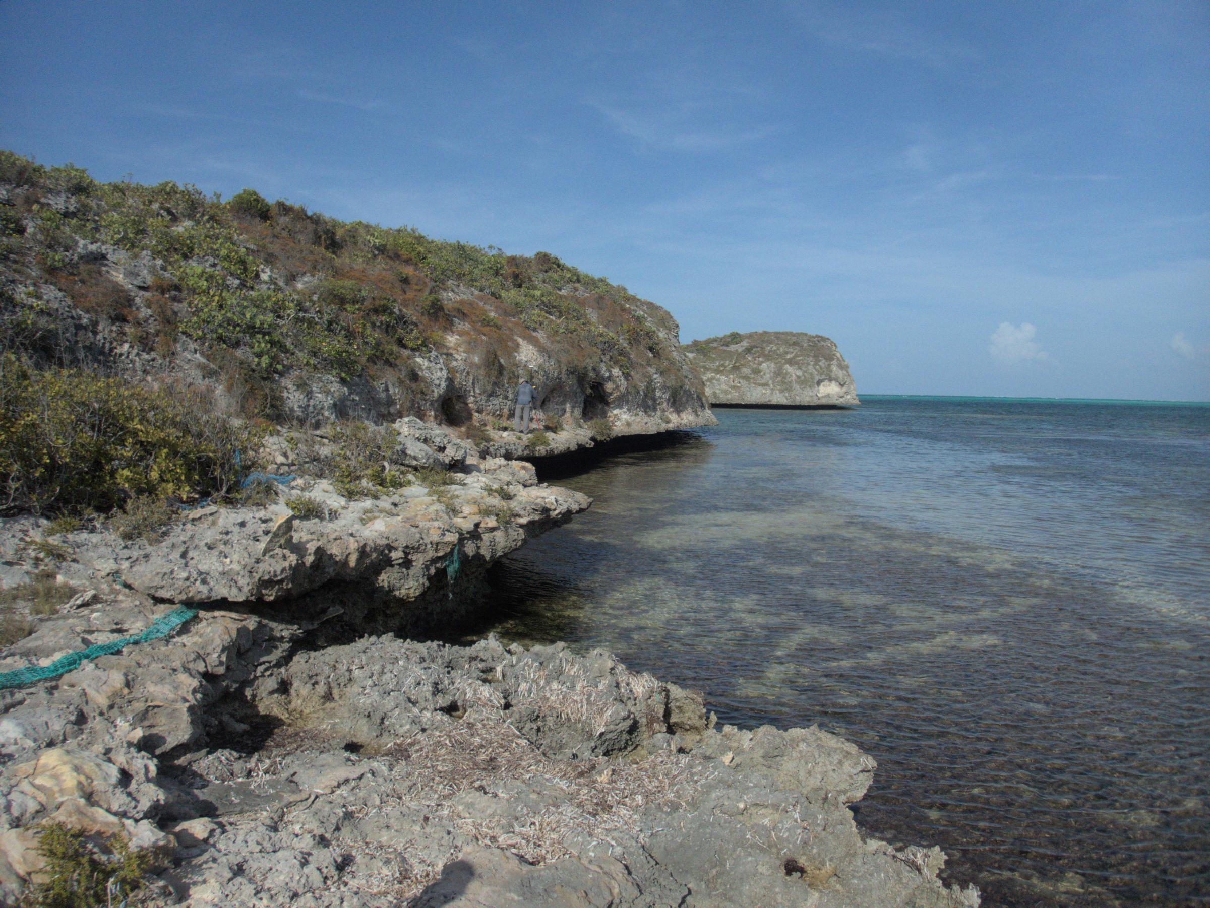 Roger finishing up a survey of a fossilized last interglacial reef