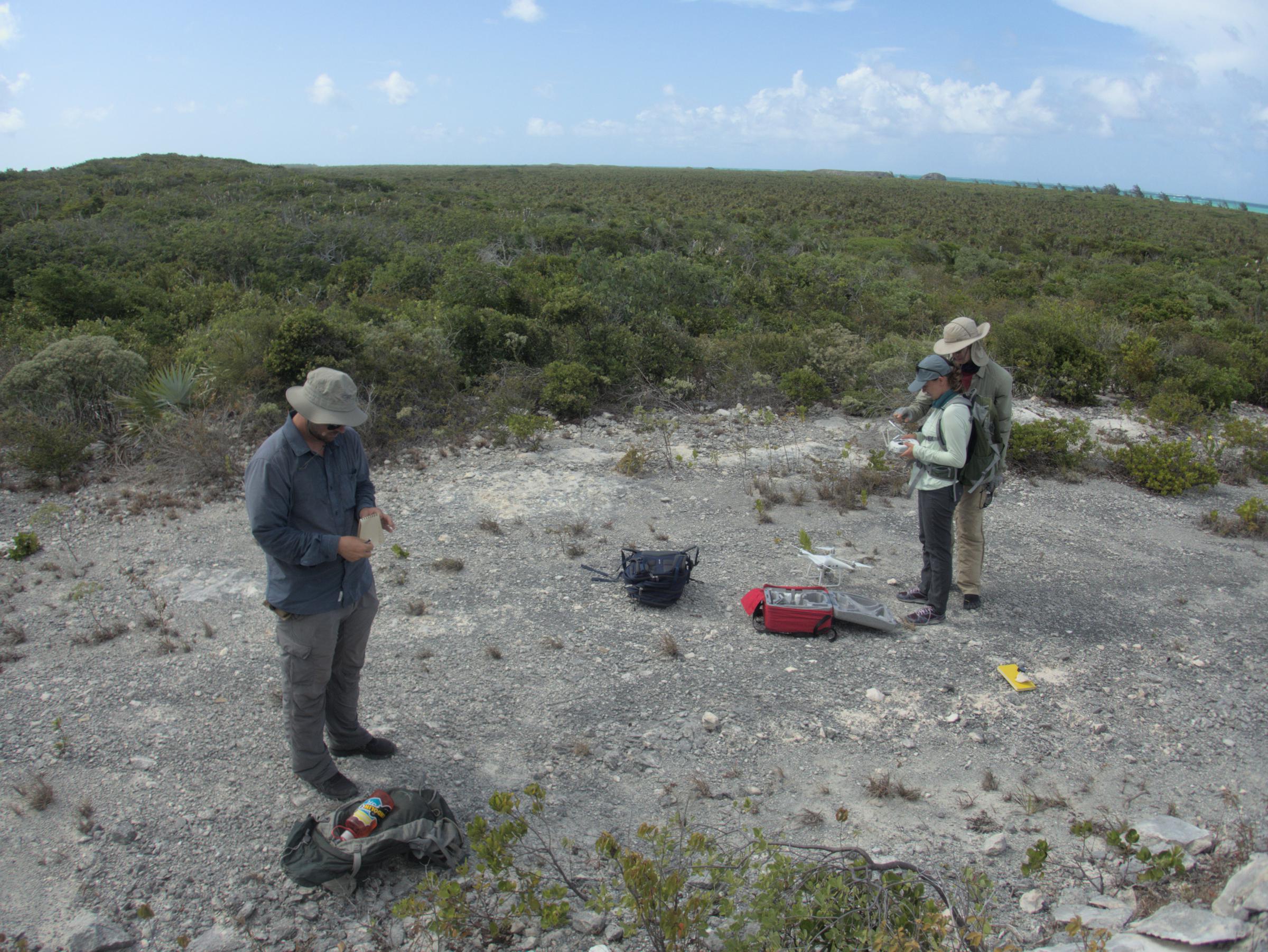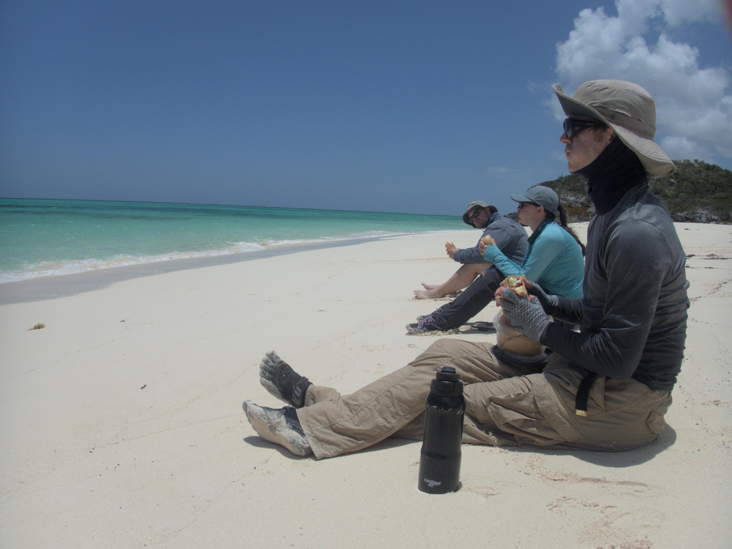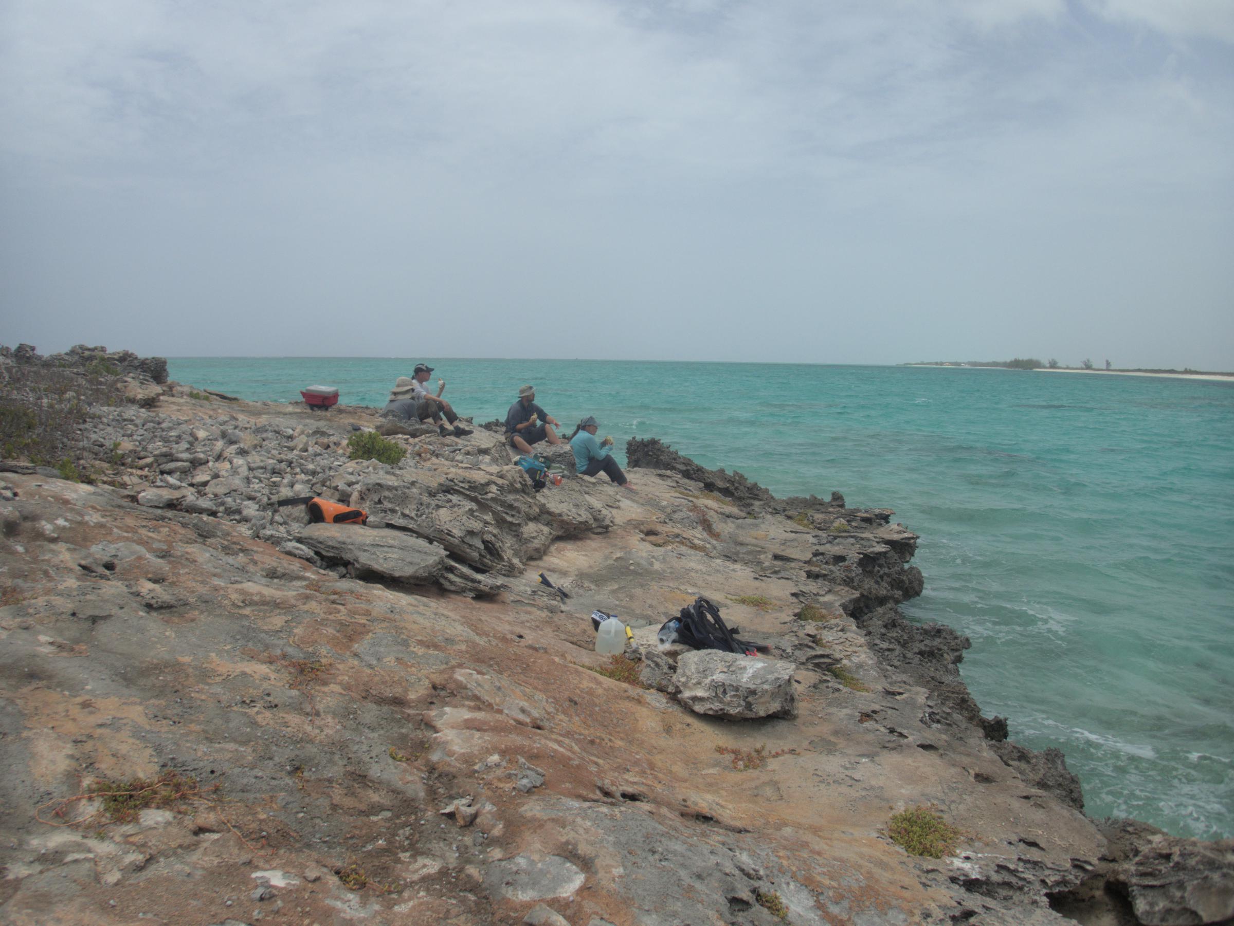 The team enjoys the view during lunch from Three Mary Cays