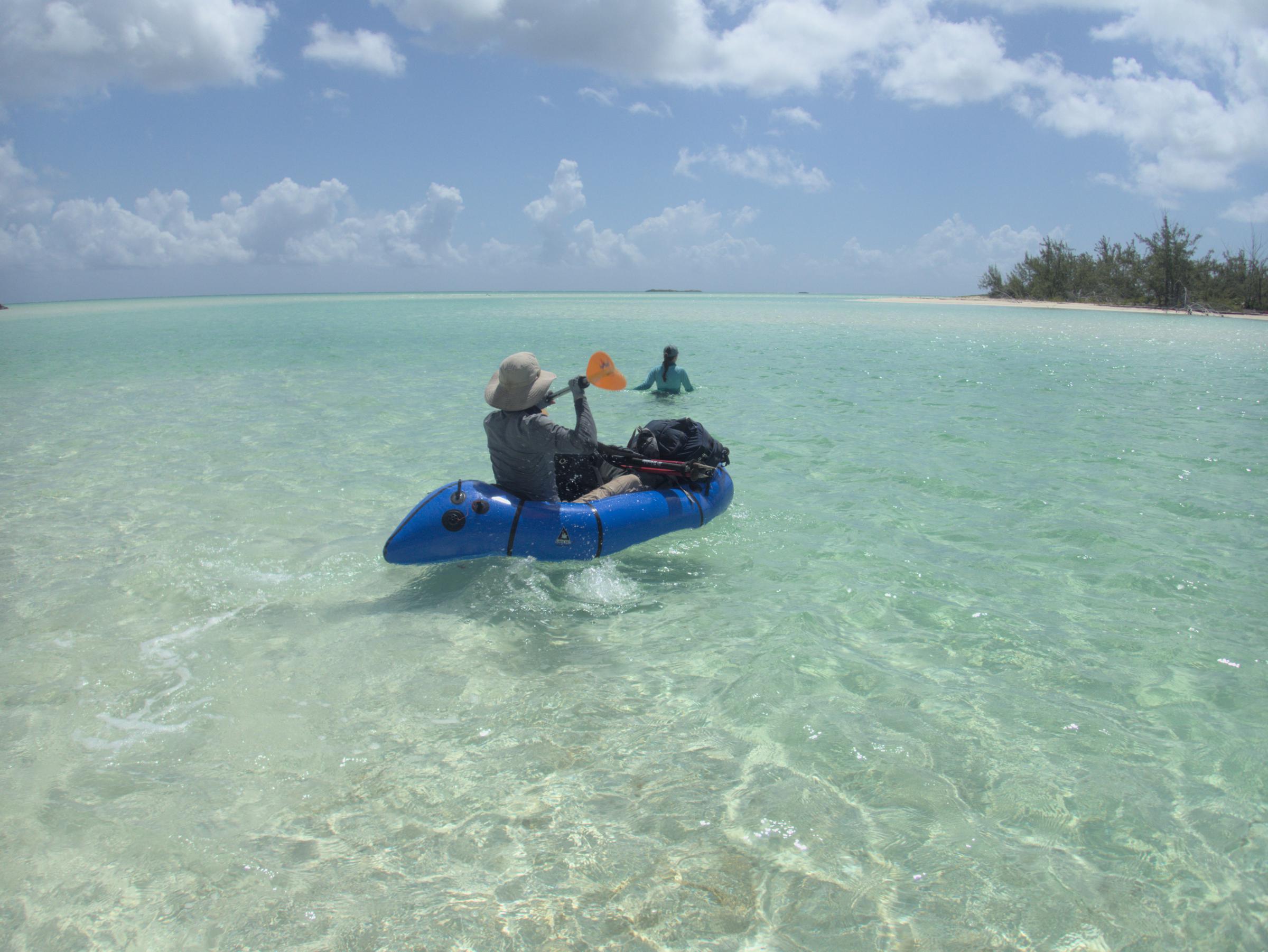 Preparing the packraft to transport gear to the distant cay