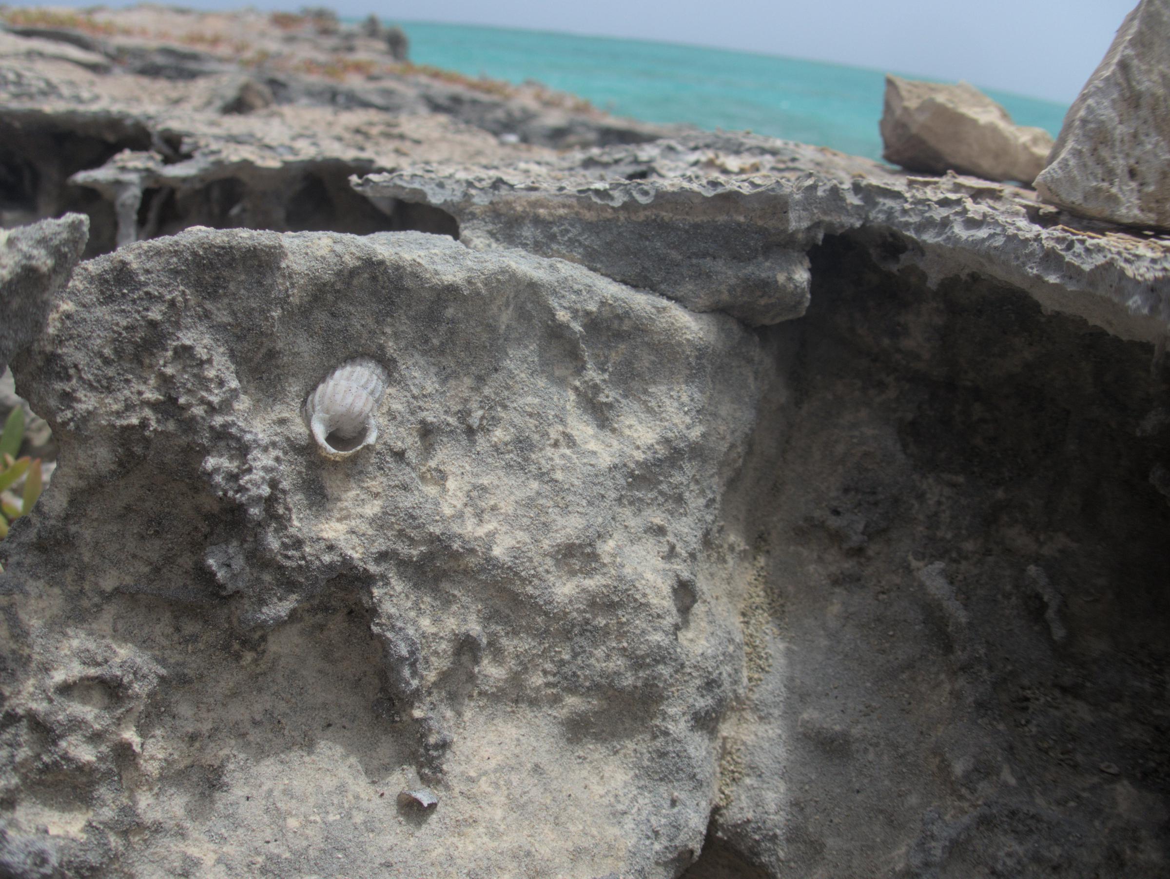 Cerion snails weathering out of a fossilized terrestrial dune
