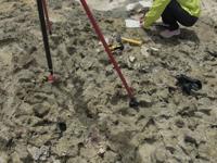 Oana is happy to find a nice fossil coral after the long and hot trek