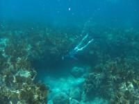 Oana samples a large Orbicella Annularis (Organ Pipe Morph)